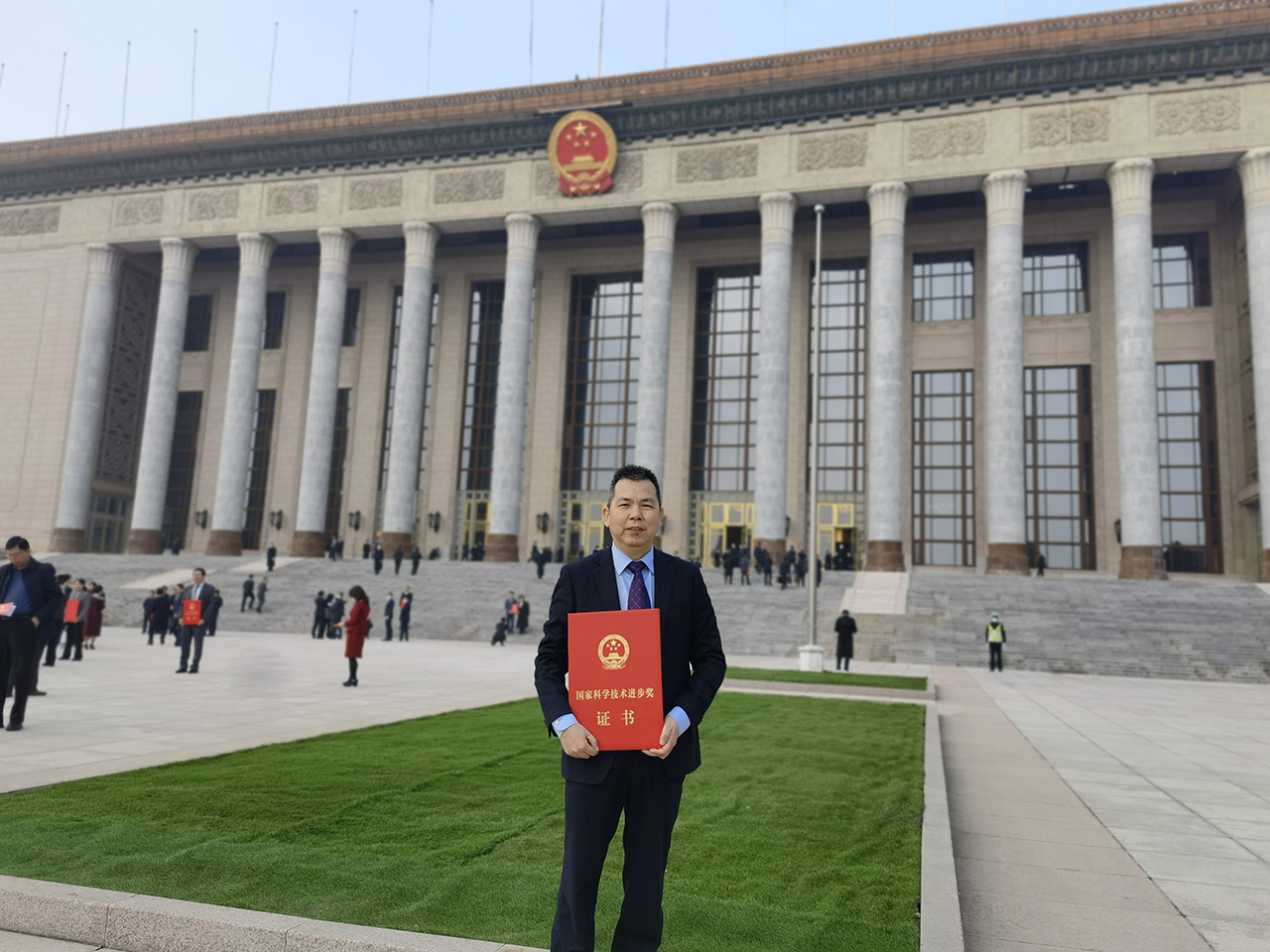 11月3日,浙江上洋機械股份有限公司總經(jīng)理黃劍虹手捧獲獎證書(shū)在北京人民大會(huì )堂門(mén)口拍照留影——公司與安徽農業(yè)大學(xué)等單位聯(lián)合申報的《綠茶自動(dòng)化加工與數字化品控關(guān)鍵技術(shù)裝備及應用》獲得國家科學(xué)技術(shù)進(jìn)步獎二等獎!